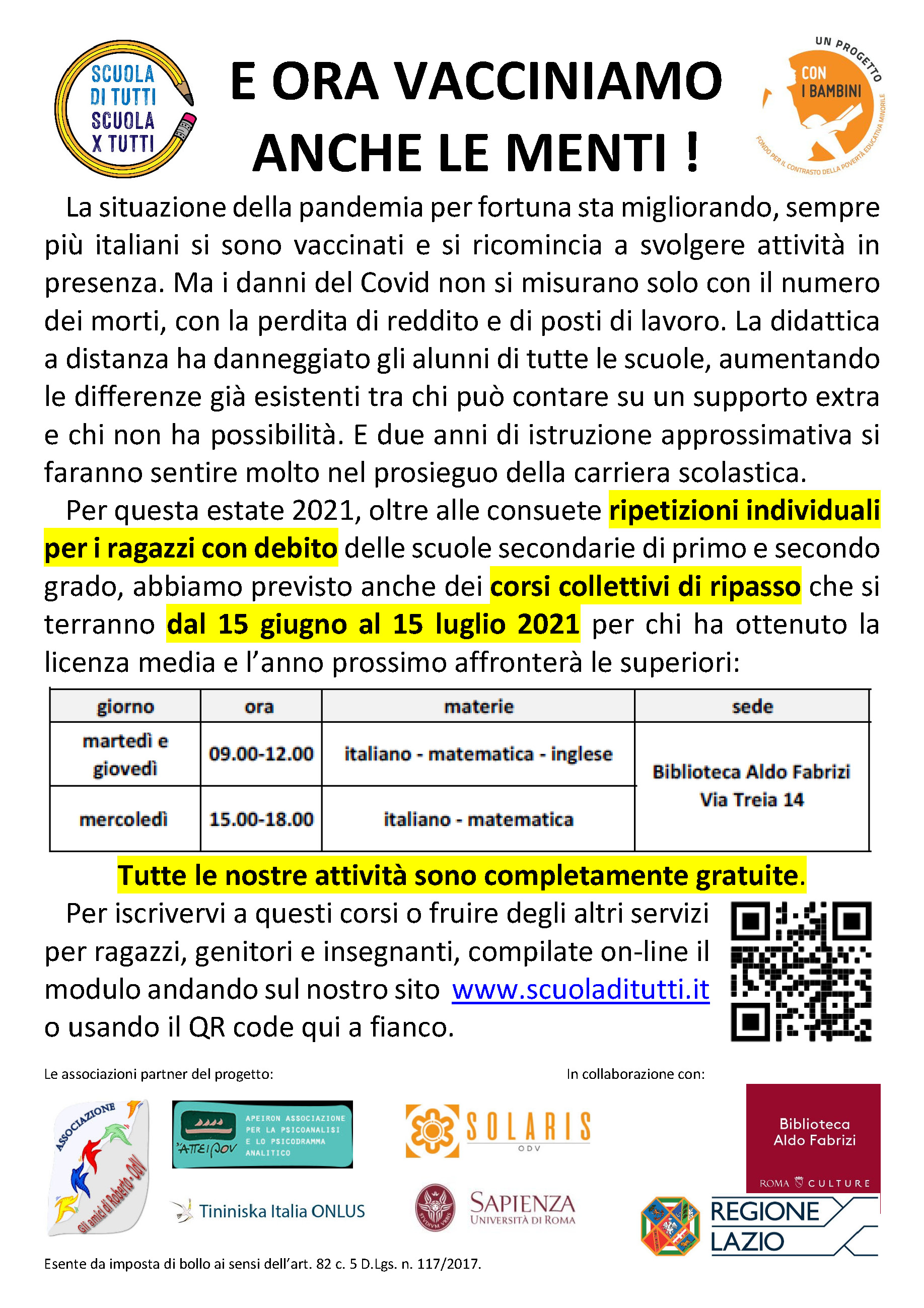 Queste sono le attivita' previste dal progetto. Si coloreranno man mano che diverranno operative.